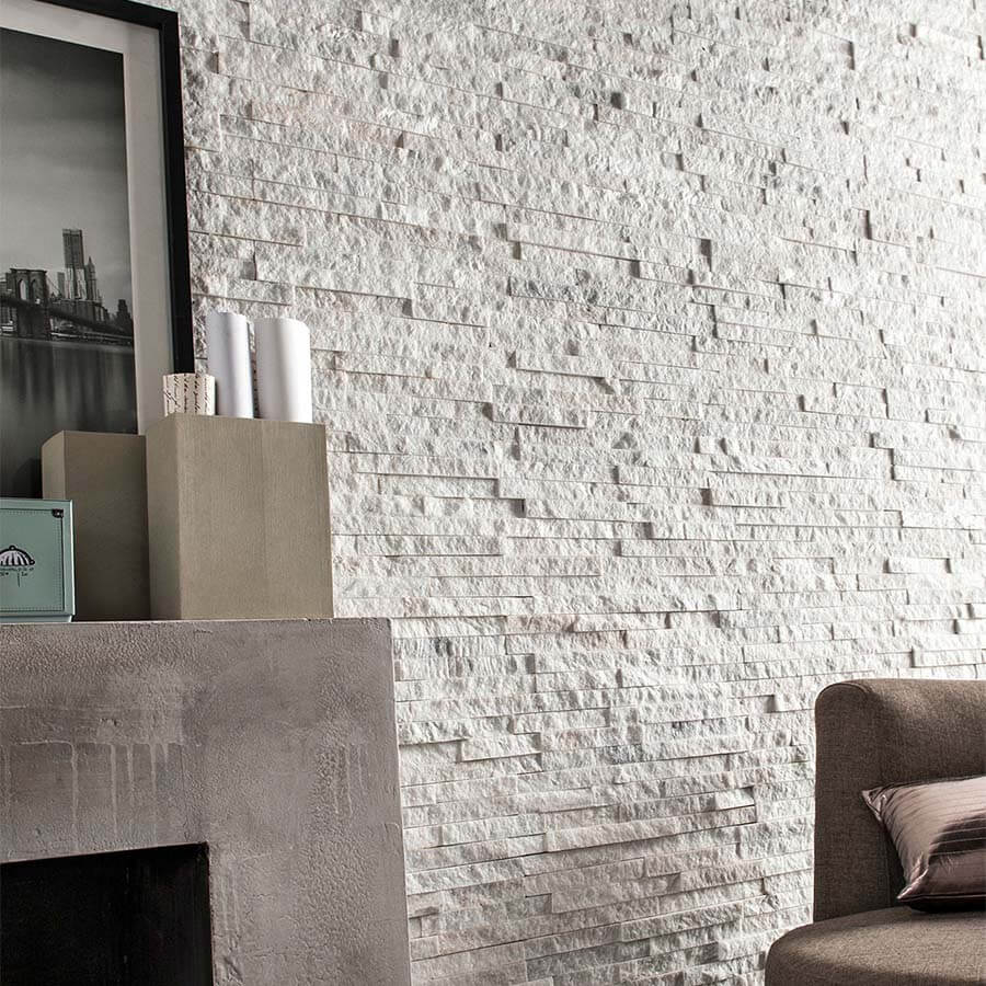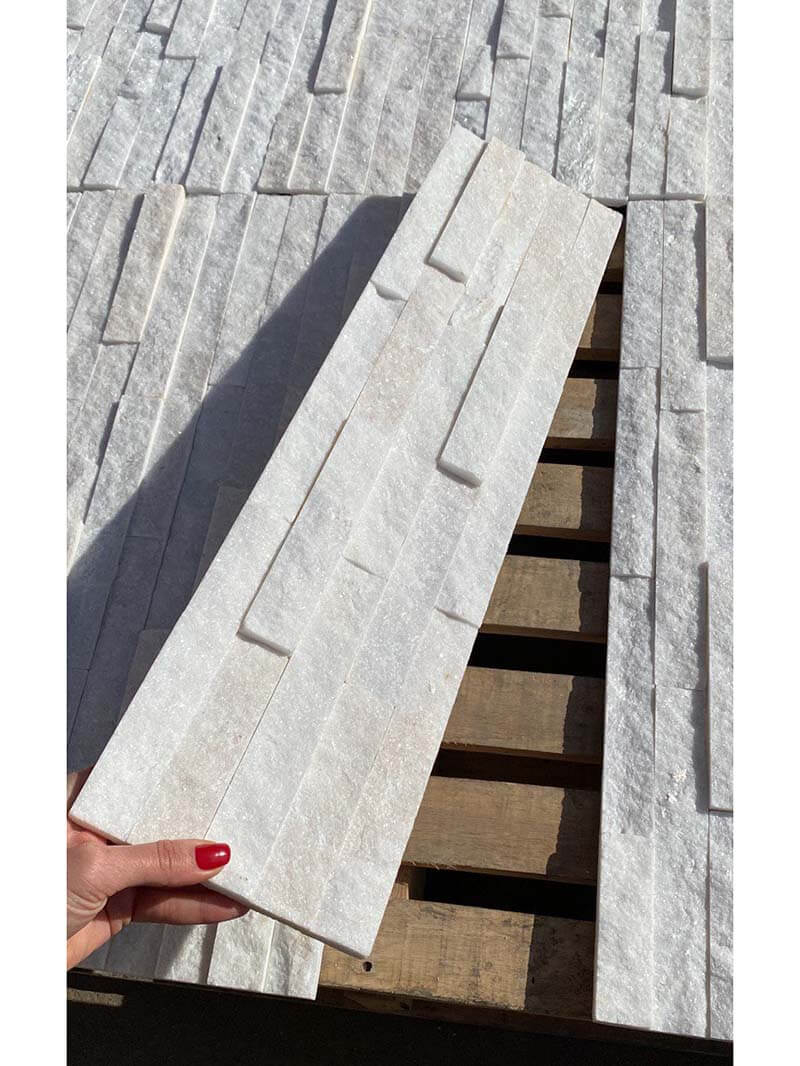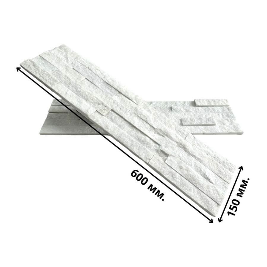 3Д панель из камня Кварцит белый (Классика) 600х150х10-20 мм (7 шт.)