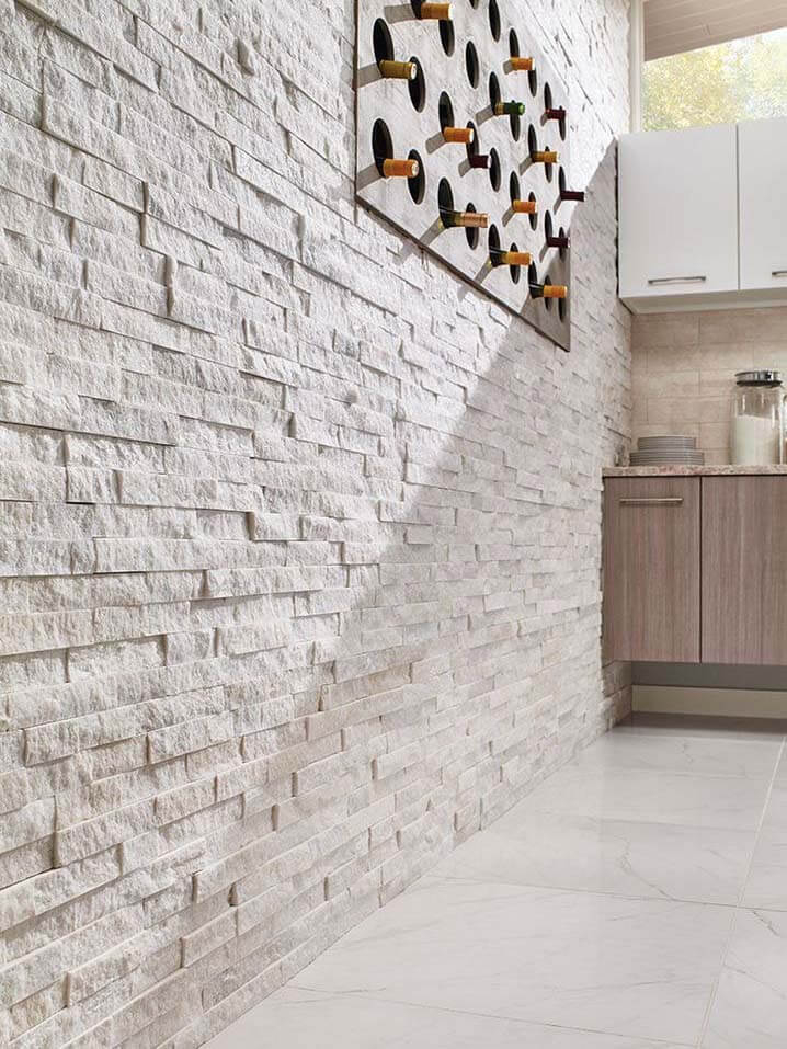 Кварцит белый используется для внутренней и внешней отделки.