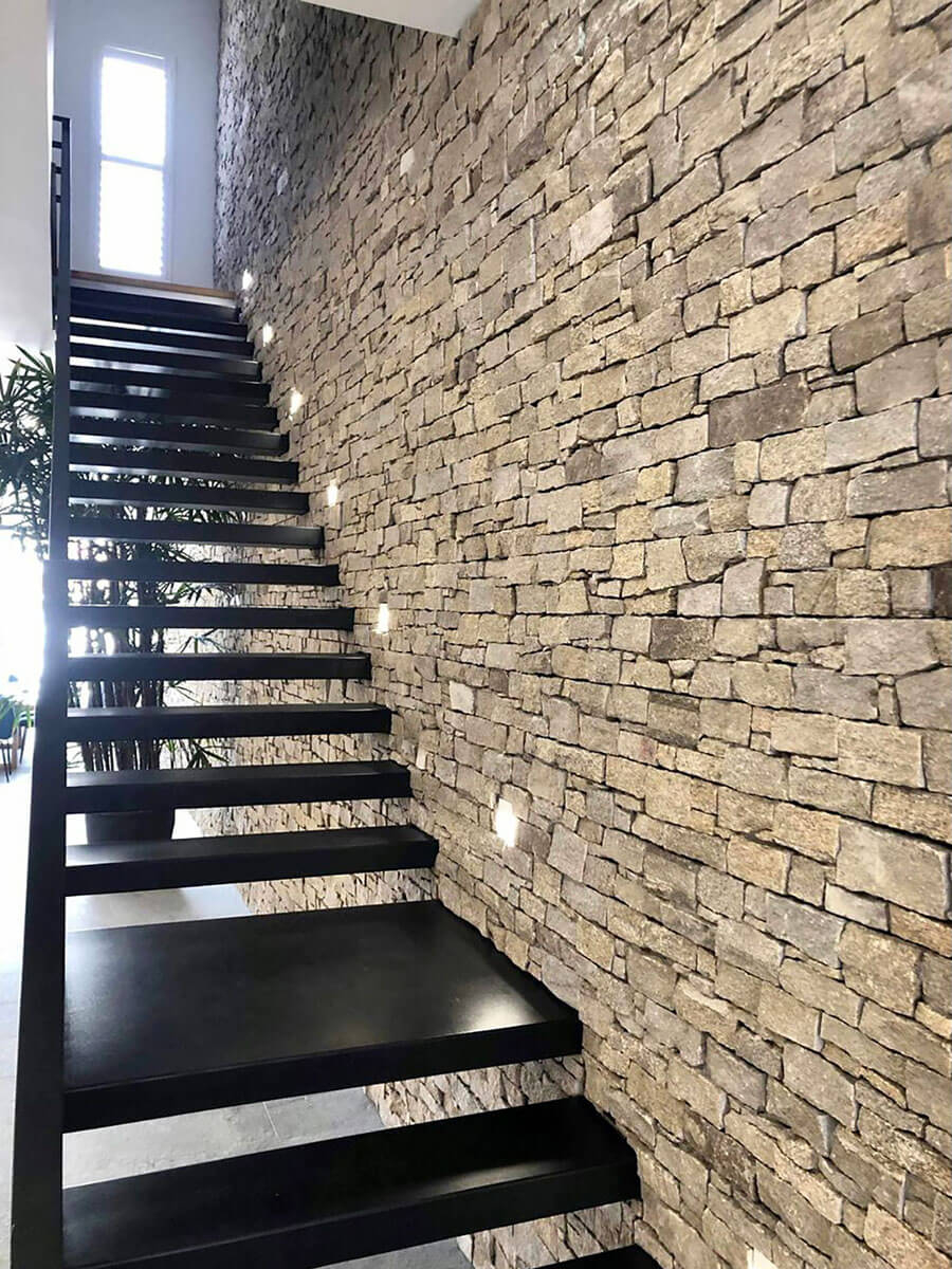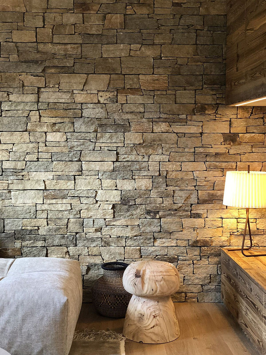 Кварцит Серо-коричневый используется для внутренней и внешней отделки.