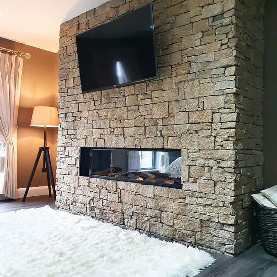 Камень продается готовыми панелями, состоящими из склеенных кусочков камня.