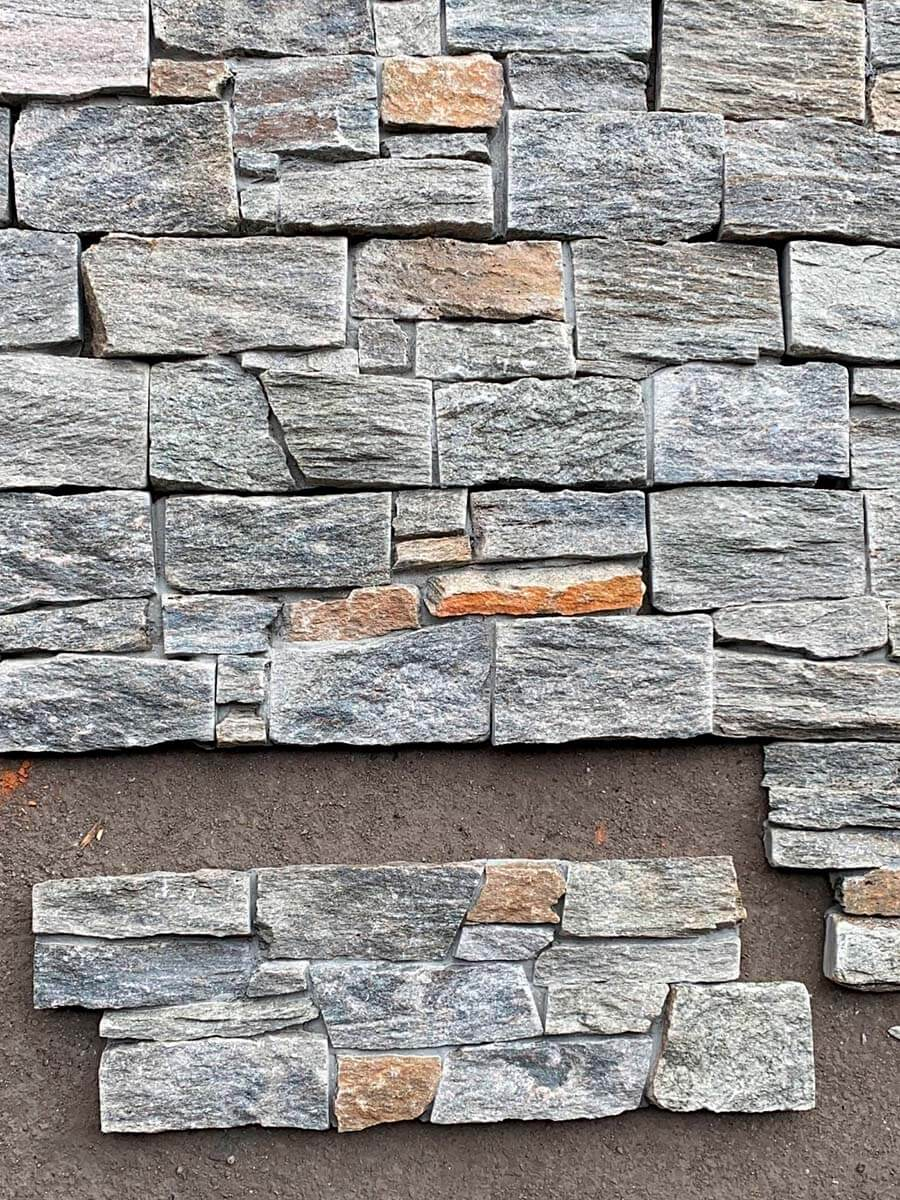 3Д панель из камня Кварцит серо-зеленый (Грубый камень) 550x200x20-40 мм (4 шт.)
