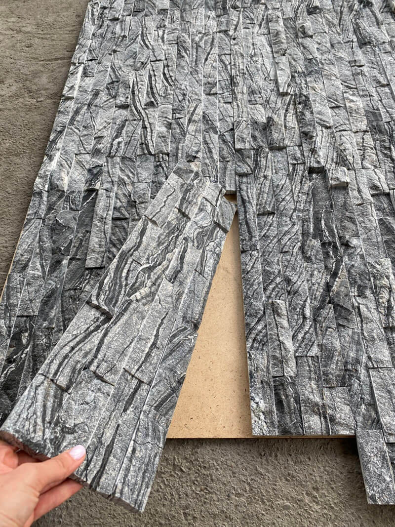 3Д панель из камня Мрамор древесный-серый (Классика) 600х150х10-25 мм (6 шт.)