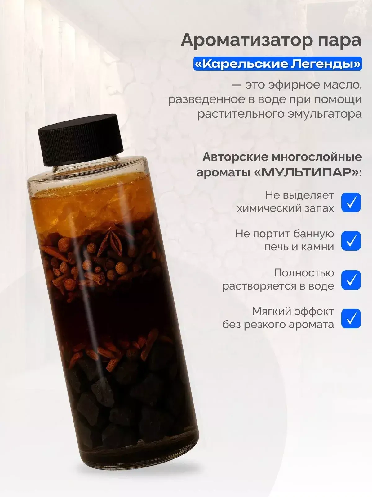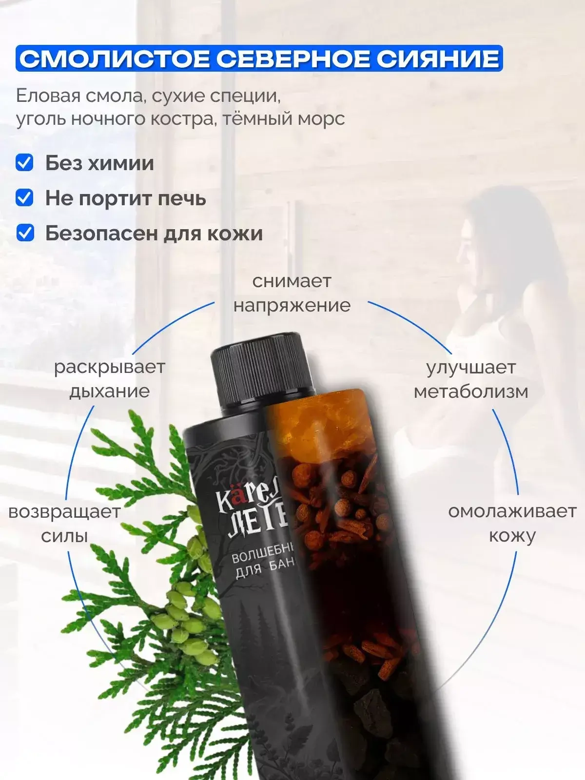 Помогает очистить дыхание и создать мощный «северный» пар.