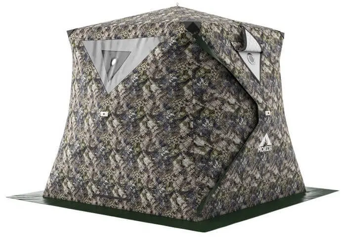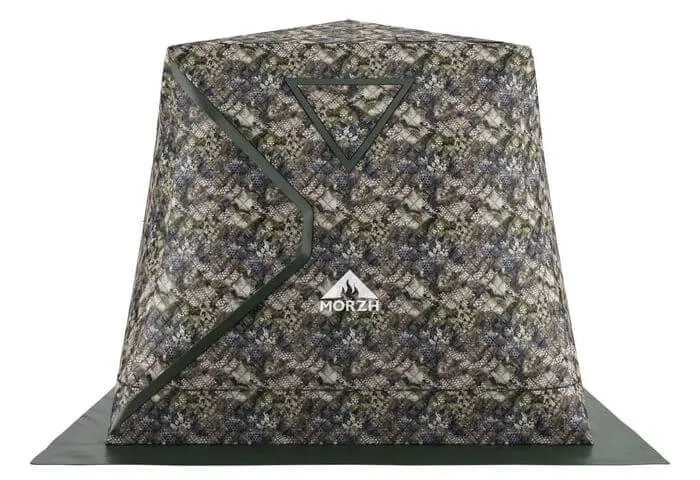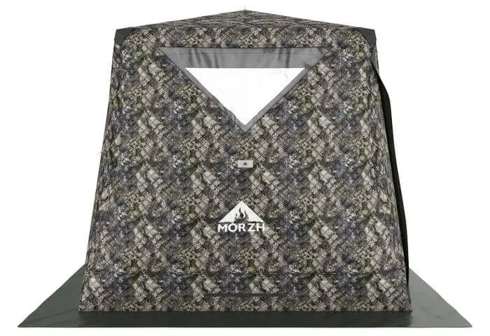 Отличительной особенностью палаток MORZH КУБ является наличие 2-х разделок под печь. Это позволяет использовать ее как зимнюю палатку для рыбалки и как мобильную палатку-баню. MORZH КУБ выполнена в виде трапеции, что делает палатку устойчивее на ветру и обеспечивает достаточно пространства для комфортного размещения людей и снаряжения. В палатке два дверных узла на противоположных сторонах.