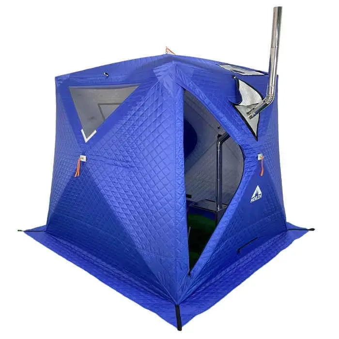 С двух сторон палатки размещены большие окна треугольной формы со шторками изнутри, шторки можно открыть или закрыть. Выполнены из новейшего материала TPU - сохраняет эластичность на морозе до -40℃.