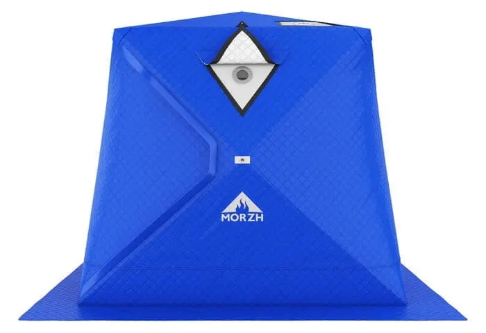 Отличительной особенностью палаток MORZH КУБ является наличие 2-х разделок под печь. Это позволяет использовать ее как зимнюю палатку для рыбалки и как мобильную палатку-баню. MORZH КУБ выполнена в виде трапеции, что делает палатку устойчивее на ветру и обеспечивает достаточно пространства для комфортного размещения людей и снаряжения. В палатке два дверных узла на противоположных сторонах.