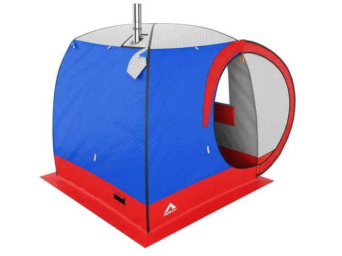 Единственное отличие бани-палатки МОРЖ LUX от классической модели МОРЖ - это удобная распашная дверь. Антидождевой клапан фиксирует дверь и защищает от попадания осадков верхнюю часть сектора двери.
