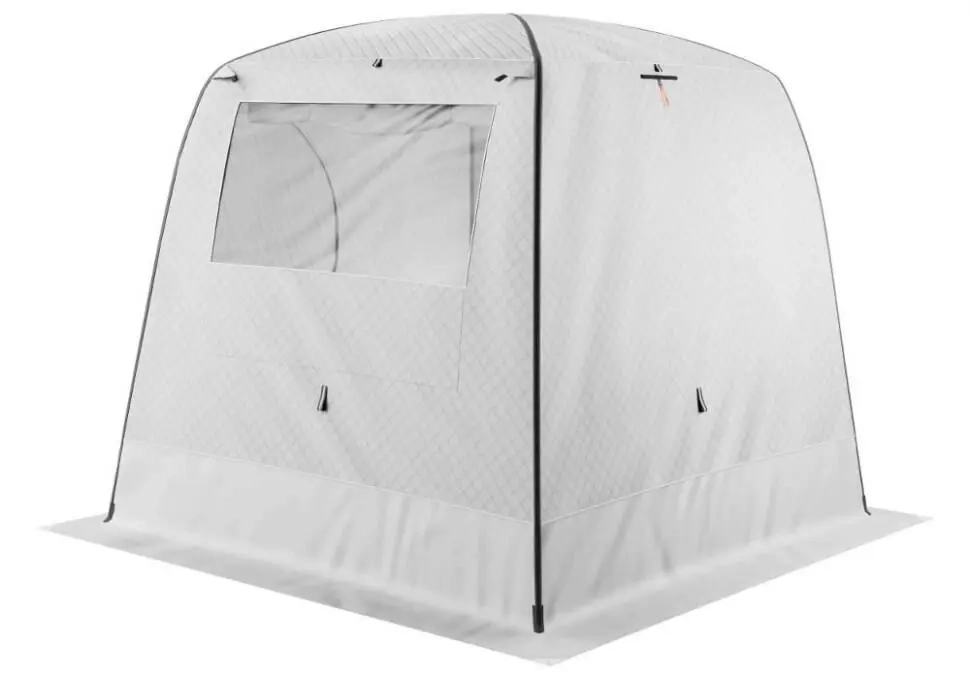Тент состоит из Оксфорд 240, утеплителя и прочной легкой ткани Таффета с усиливающим плетением.