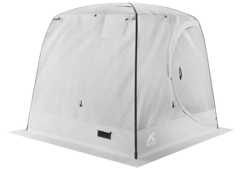 Единственное отличие бани-палатки МОРЖ LUX от классической модели МОРЖ - это удобная распашная дверь. Антидождевой клапан фиксирует дверь и защищает от попадания осадков верхнюю часть сектора двери.