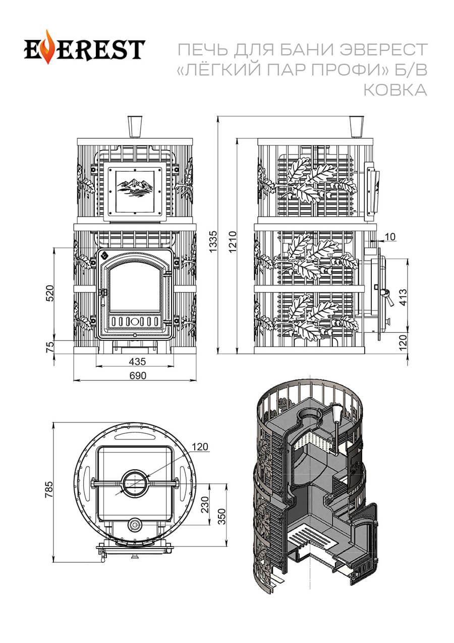 Чугунная печь для бани Эверест "Легкий пар Профи" Б/В, Ковка (чугунная закрытая каменка).