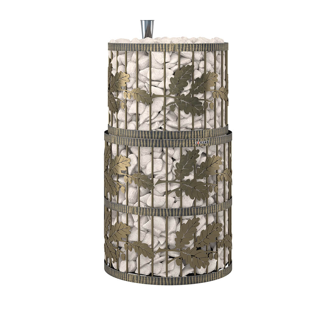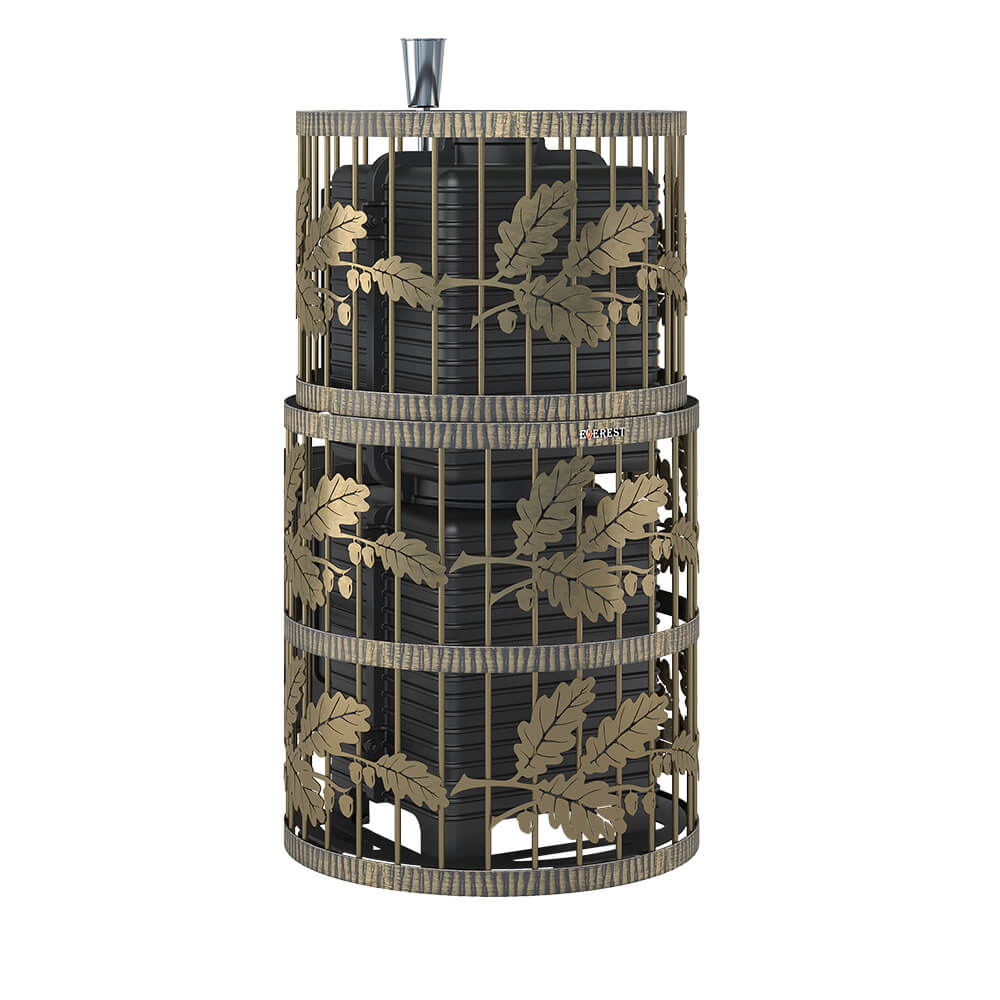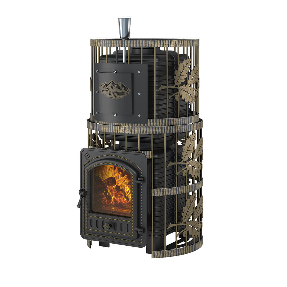 Закрытая каменка рассчитана на размещение 60 килограммов камня для бани, создаёт массивный тепловой заряд.