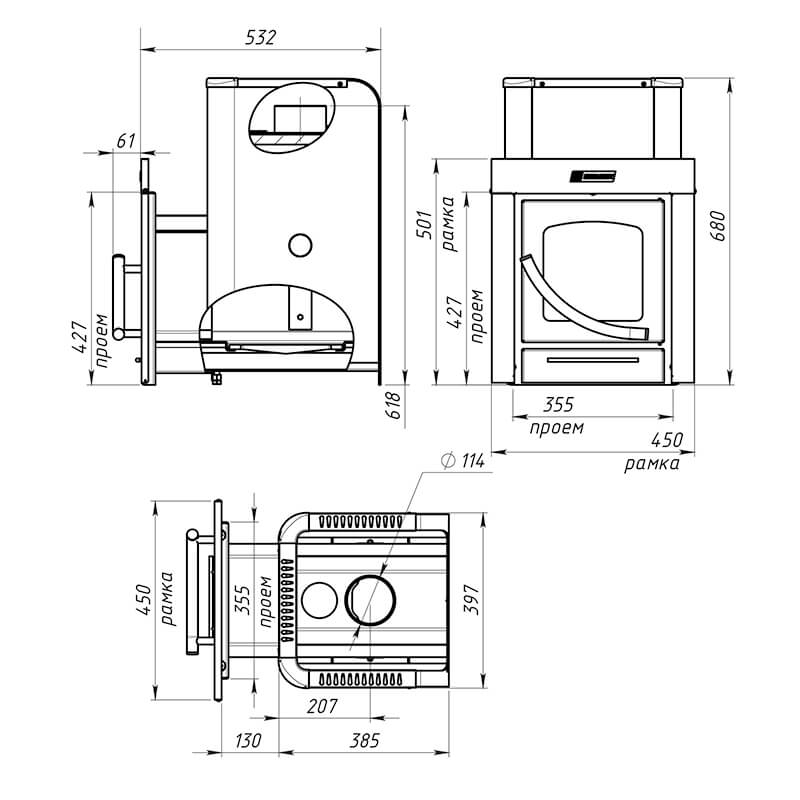 Конструкция печи специально разработана для максимальной эффективности при компактных размера корпуса.