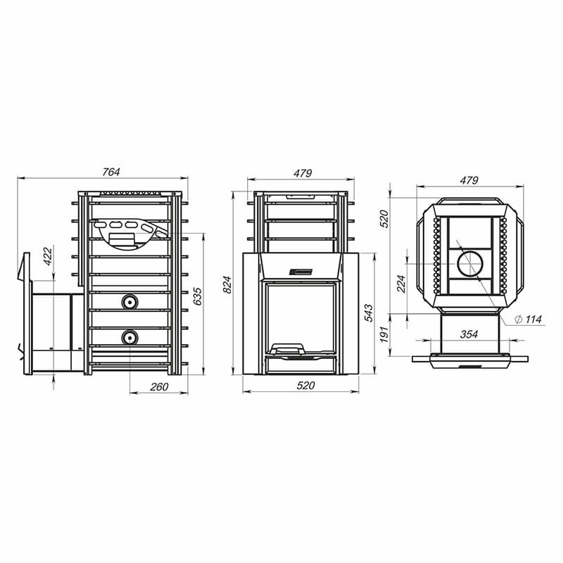 Топка, каменка и все дымовые каналы выполнены качественной печной стали по ГОСТу