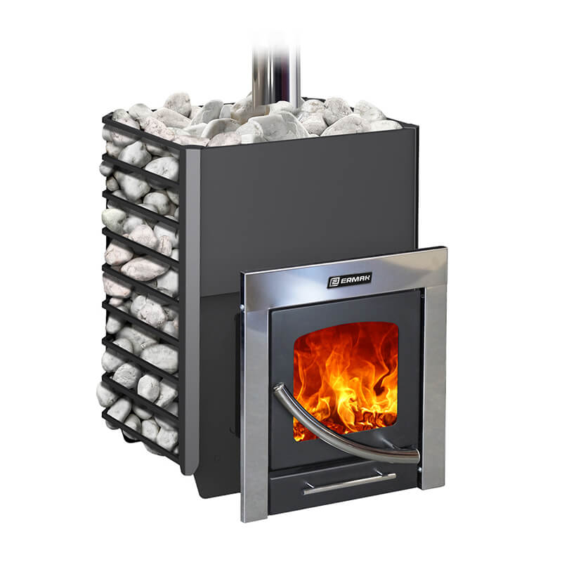 Дровяная печь для бани Ермак 16 ПС Сетка Классика, с панорамным стеклом.