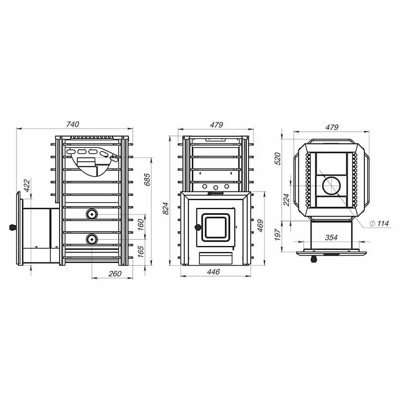 При этом каменка и сложные дымовые каналы сделаны из конструкционной стали.