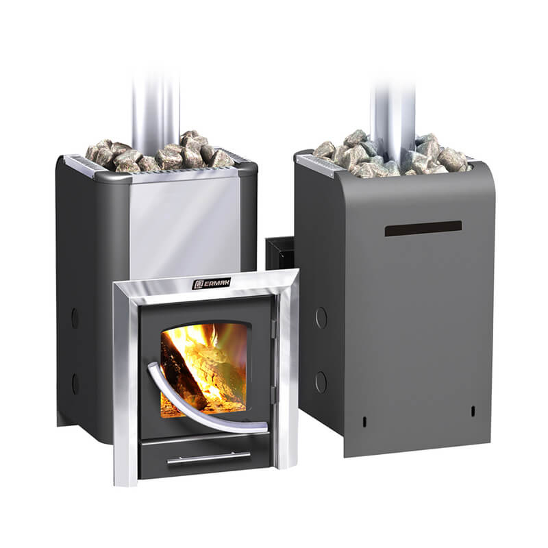 Ермак 20-ПС Элит - это универсальная банная печь, в качестве топлива в которой могут использоваться дрова, либо топливные брикеты.