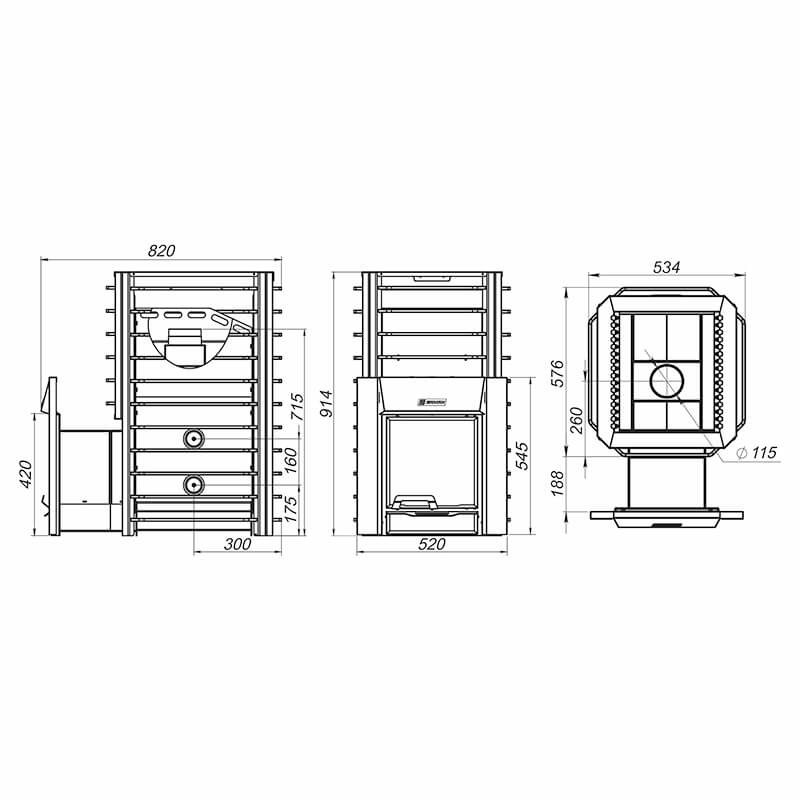 В ее специальной конструкции предусмотрена возможность установки дополнительного оборудования. На печь можно дополнительно установить модуль закрытой каменки, парообразователь, теплообменник под выносной бак или отопление, а также различные опции на трубу дымохода.
