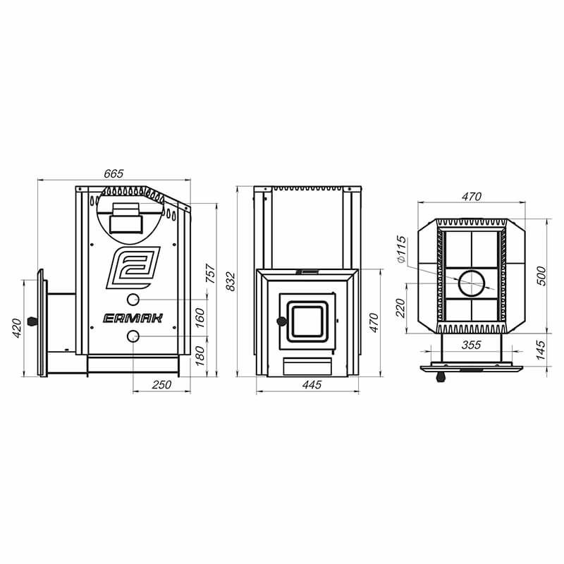 Дровяная печь для бани Ермак 24 Стандарт (Сталь)