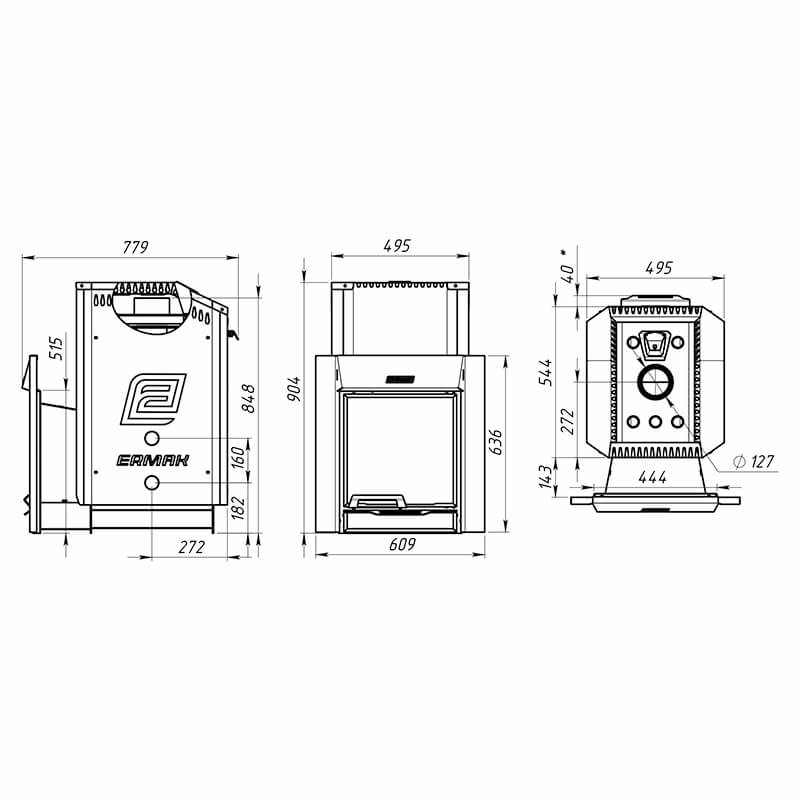 В боковых стенках кожуха также предусмотрены 2 отверстия для установки теплообменника.