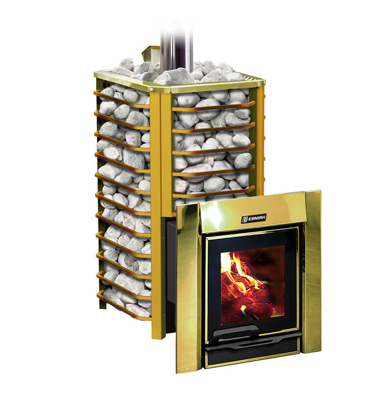 ERMAK 30 Сетка Люкс GOLD (нержавеющая сталь) - это уникальная модульная банная печь, основные элементы топки и дымовых каналов которой выполнены из настоящей пищевой термостойкой нержавейки INOX AISI 304.