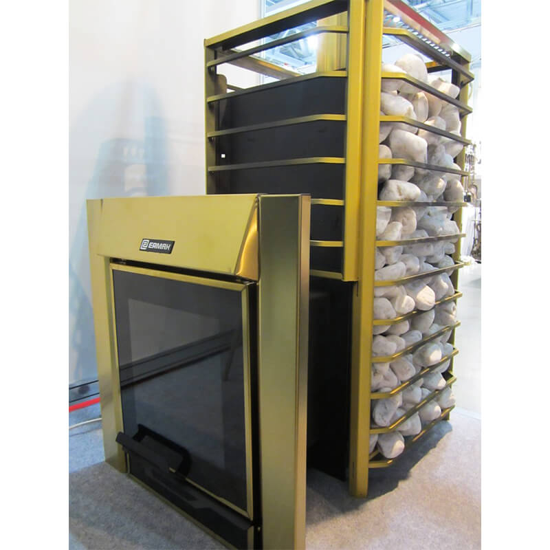 Отличительной особенностью банной печи Ермак 30 Сетка Люкс GOLD является яркий дизайн и золотое обрамление, выполненное из пищевой термостойкой нержавеющей стали марки AISI 304, которая не магнитится и имеет высокие показатели термостойкости и устойчивости к агрессивным средам.