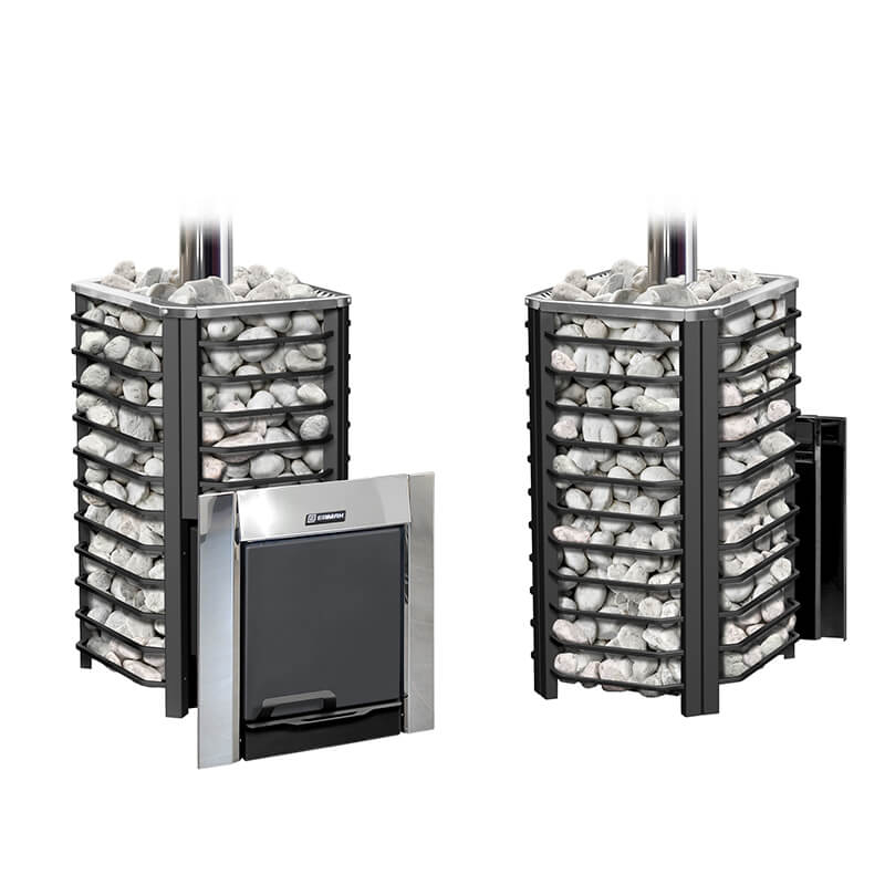 Вместительная открытая каменка с возможностью установки модуля закрытой каменки и парообразователя.