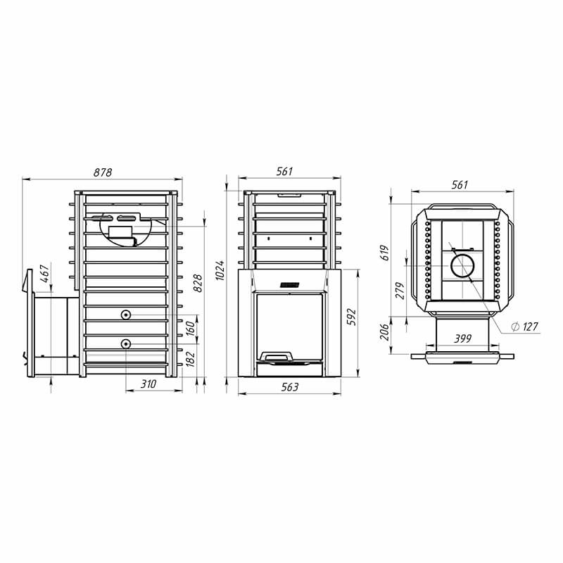 А установив специальные опции печь сможет отапливать соседние помещения, нагреть воду в выносном баке или получить настоящий легкий мелкодисперсный пар.