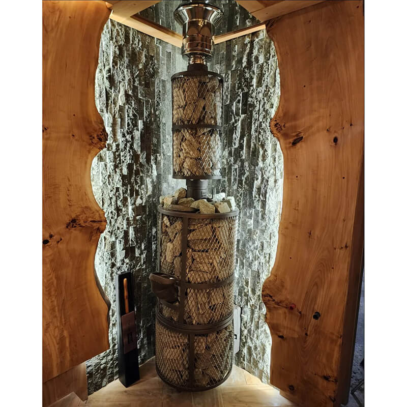 - внутренняя – герметичная емкость съемного типа, изготовленная из 3мм 439 нержавеющей стали в совокупности со специализированной трубкой, предназначенной для подачи воды на камни и изготовленной из 304 нержавеющей стали.