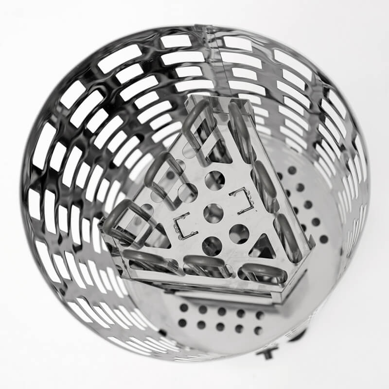 Электрическая печь каменка имеет вертикальную цилиндрическую форму и подойдет для бани и сауны с небольшой парной объемом 5-8 м3.