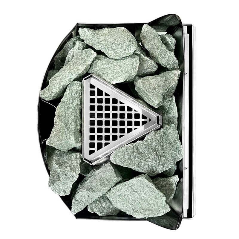 Это позволяет ставить каменку около стены парной с минимальным отступом и обеспечить максимальную пожаробезопасность.