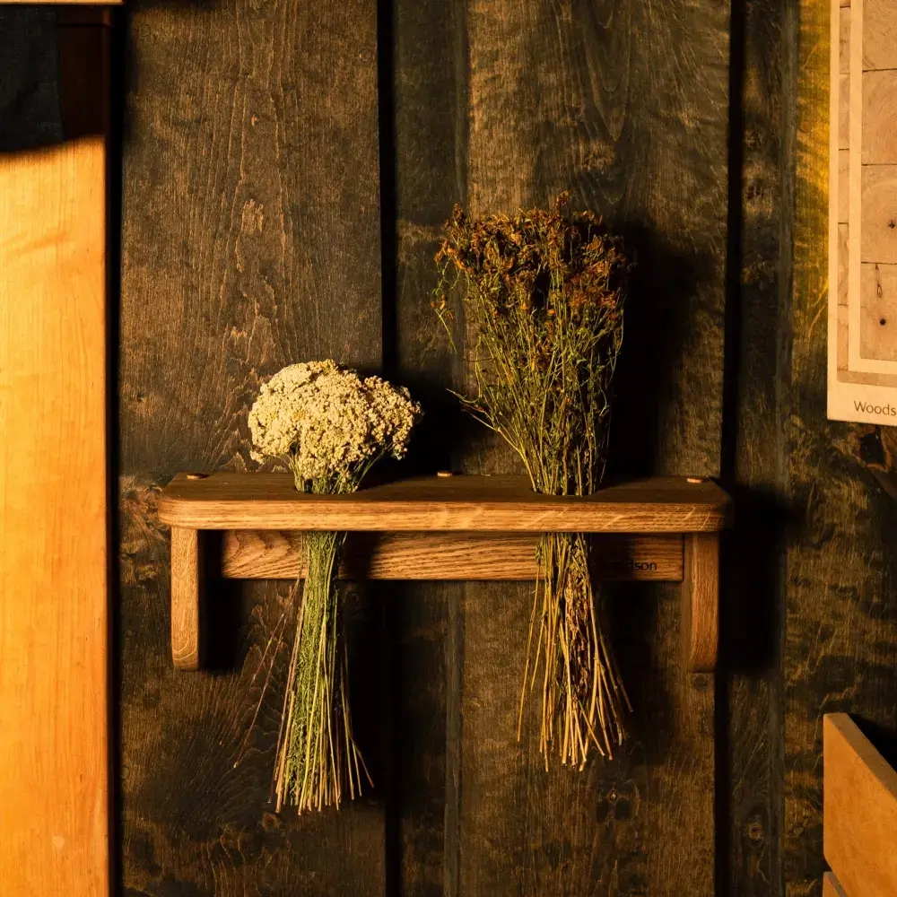 Фито полка для веников и трав Woodson изготовлена вручную из массива дуба.