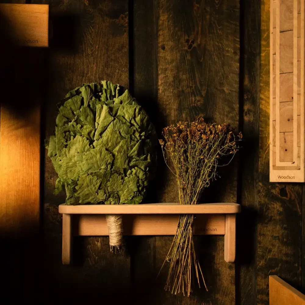 Фито-полка помогает с легкостью организовать пространство в бане и сауне, навести порядок и превратить стандартный банный аксессуар - веник - в элемент оригинального декора.