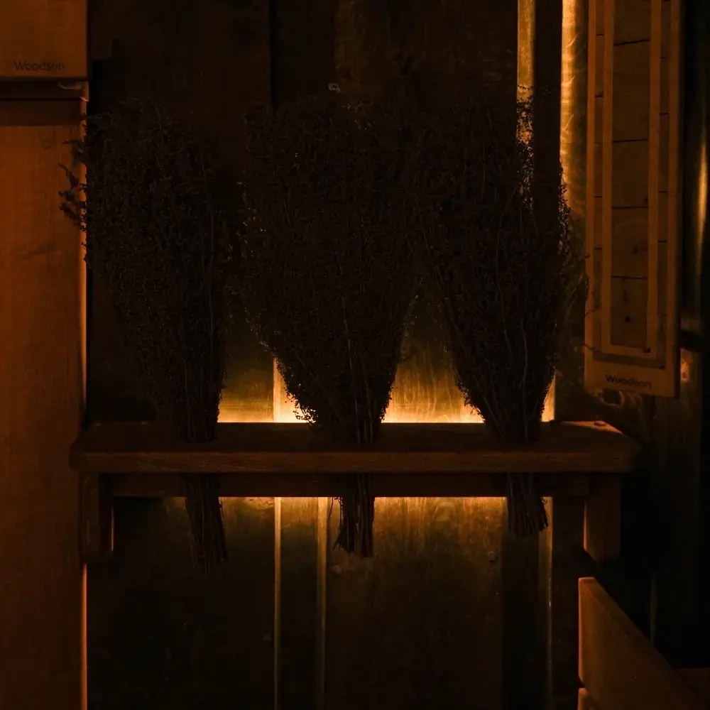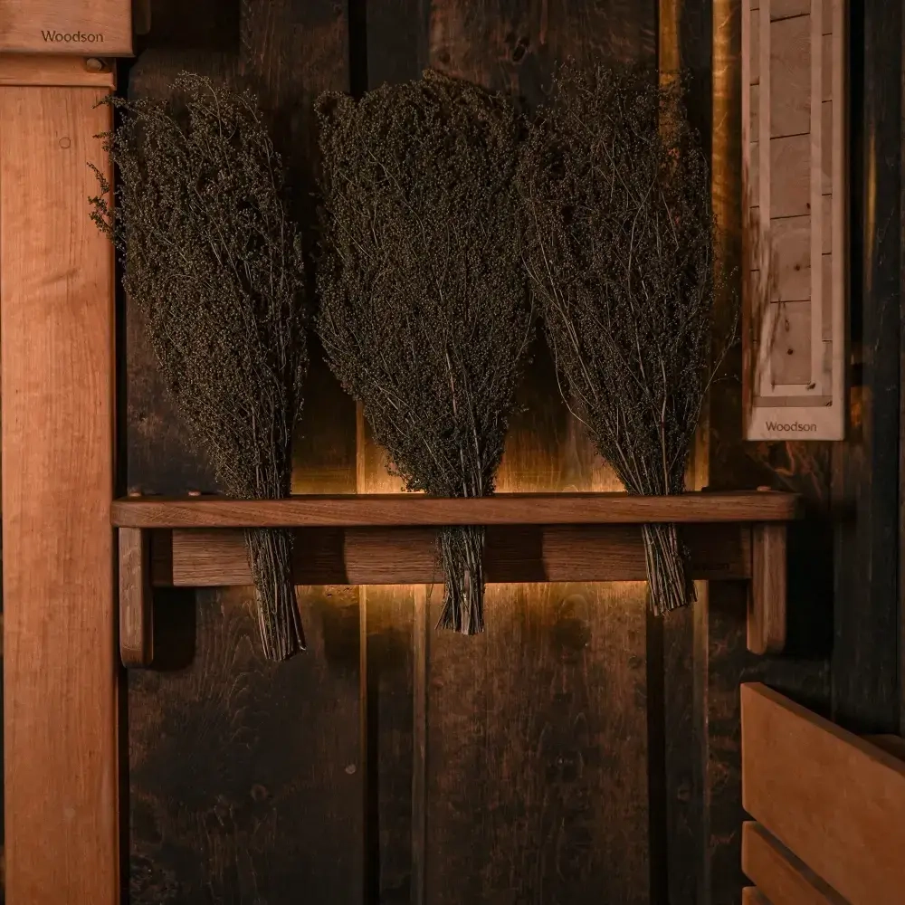 Фито-полка с подсветкой создаёт мягкое освещение и позволяет организовать пространство в бане и сауне, навести порядок и превратить стандартный банный аксессуар - веник - в элемент оригинального декора.