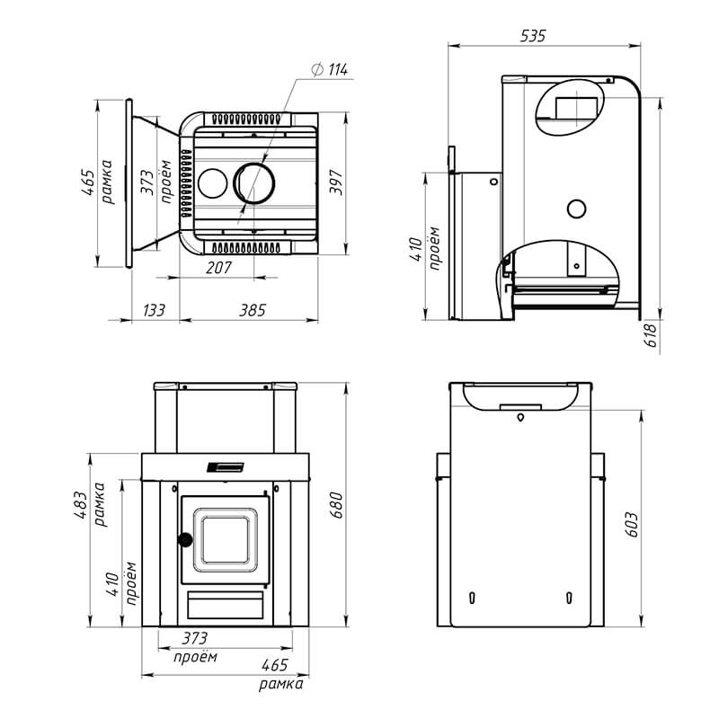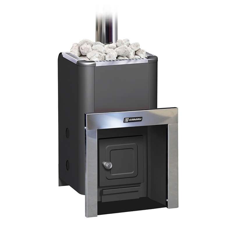 Все наружные стальные элементы корпуса печи, топочный канал, каменка и кожух окрашены качественной жаропрочной износостойкой кремнийорганической краской черного матового цвета.