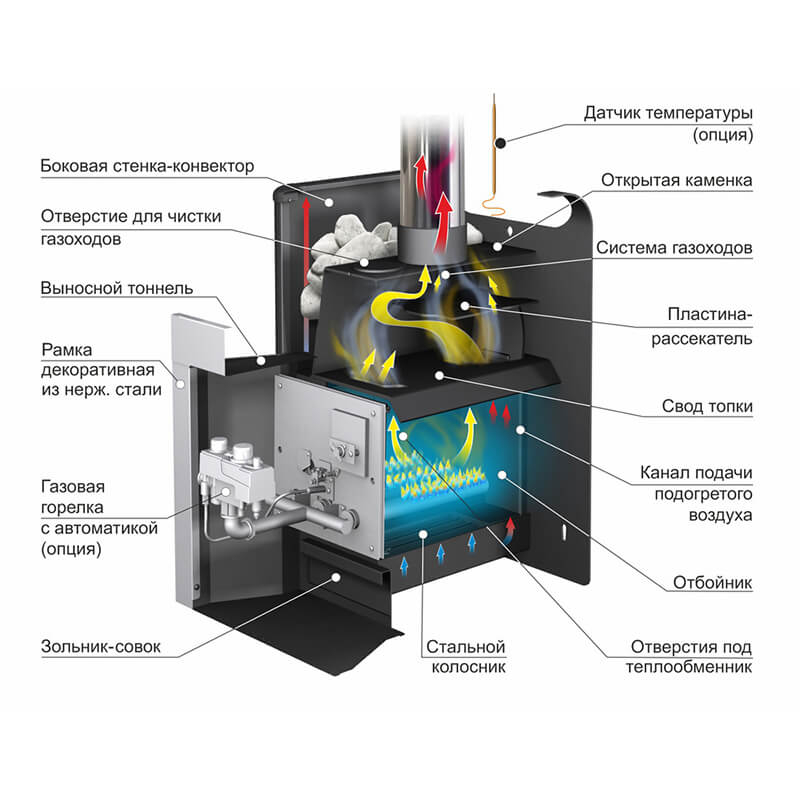 На газо-дровяную печь для бани Уралочка 12 можно установить следующие опции (приобретаются дополнительно):