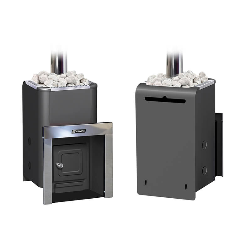Все наружные стальные элементы корпуса печи, топочный канал, каменка и кожух окрашены качественной жаропрочной износостойкой кремнийорганической краской черного матового цвета.