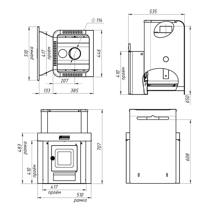 Материалом для изготовления топки, каменки и системы газоходов является конструкционная углеродистая сталь.