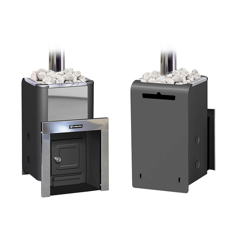 Все наружные стальные элементы корпуса печи, топочный канал, каменка и кожух окрашены качественной жаропрочной износостойкой кремнийорганической краской черного матового цвета.