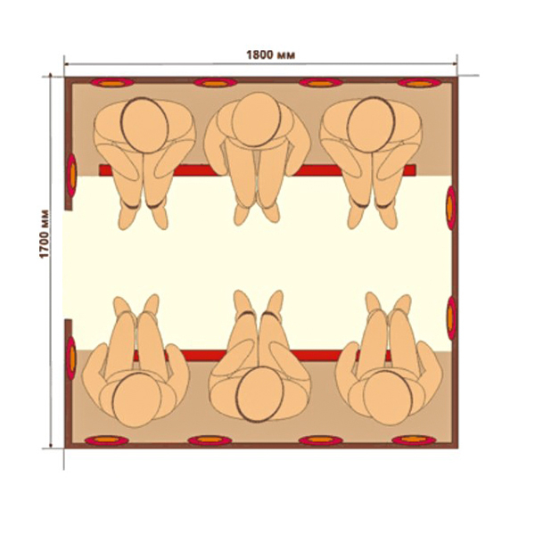 Инфракрасная сауна c керамическими излучателями, 6-местная.