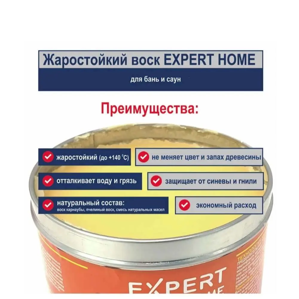 Жаростойкий воск для бань и саун создан на основе натуральных компонентов: карнаубского и пчелиного воска в сочетании с комплексом природных масел.