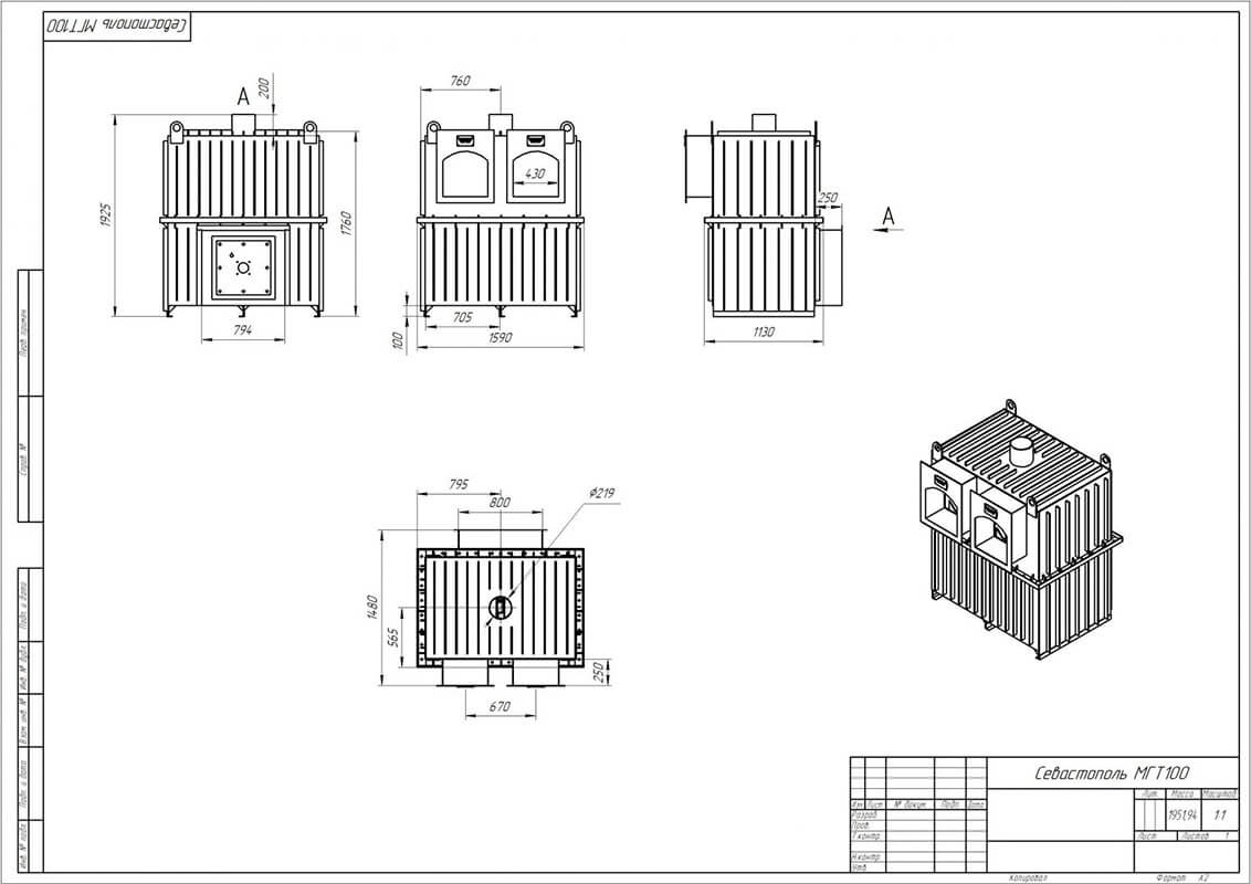 Печь для автономных коммерческих бань Тройка Севастополь-100.