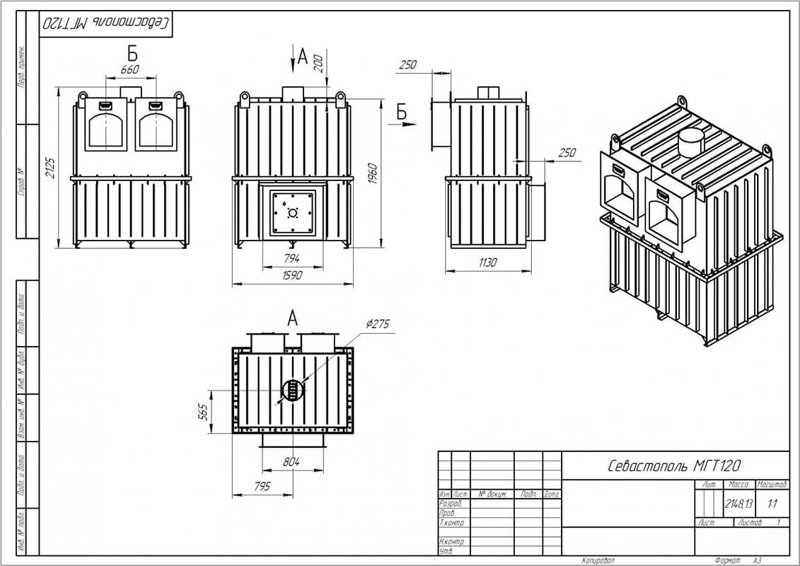 Печь для автономных коммерческих бань Тройка Севастополь МГТ-120 на газу, из нержавеющей стали.