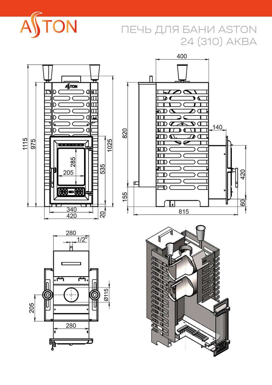 Печь для бани ASTON 24 INOX Long "АКВА" (310) Нержавеющая сталь.