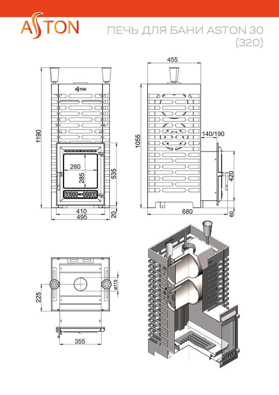 Печь для бани ASTON 30 INOX (320) Нержавеющая сталь.
