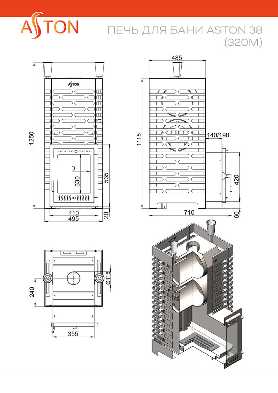 Печь для бани ASTON 38 INOX (320М) Нержавеющая сталь.