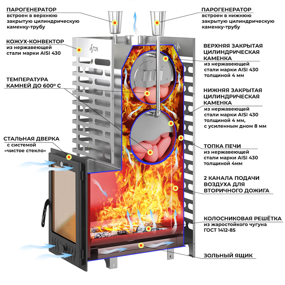 Её тщательно продуманная конструкция предотвращает излишнюю сухость воздуха в парной во время работы.