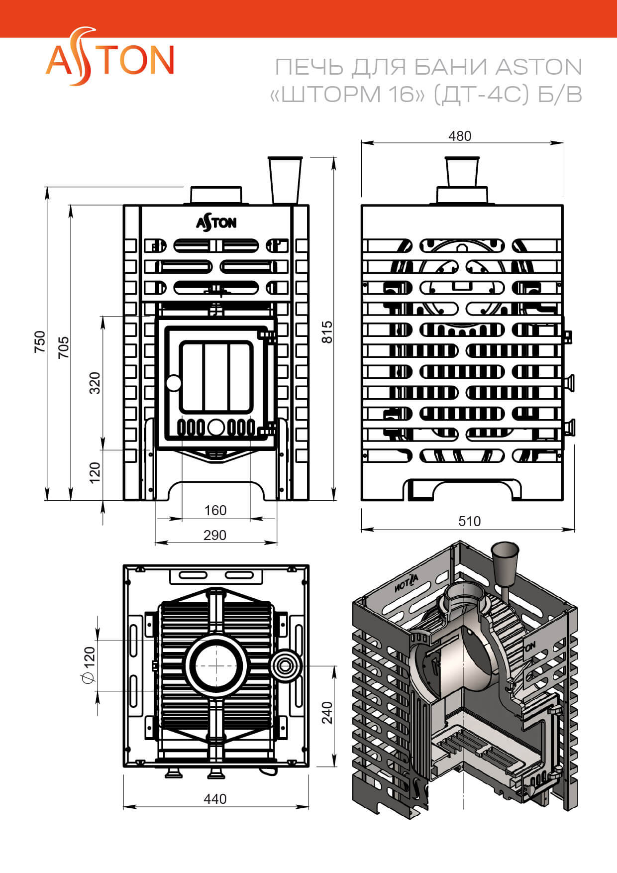 Печь для бани ASTON "Шторм 16" (ДТ-4С) Б/В Чугун.