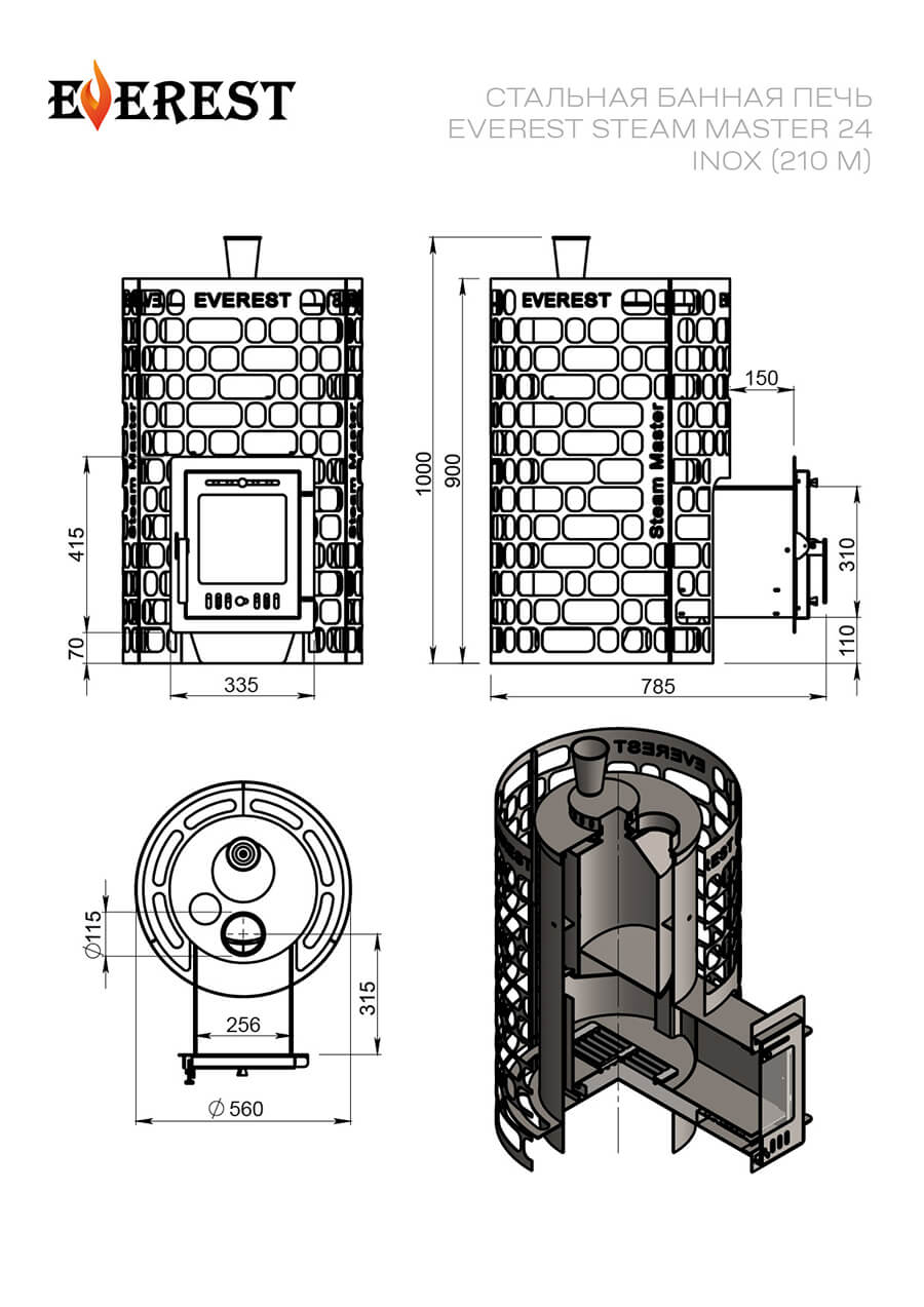 Печь для бани EVEREST Steam Master INOX изготовлена из нержавеющей стали марки AISI 430.