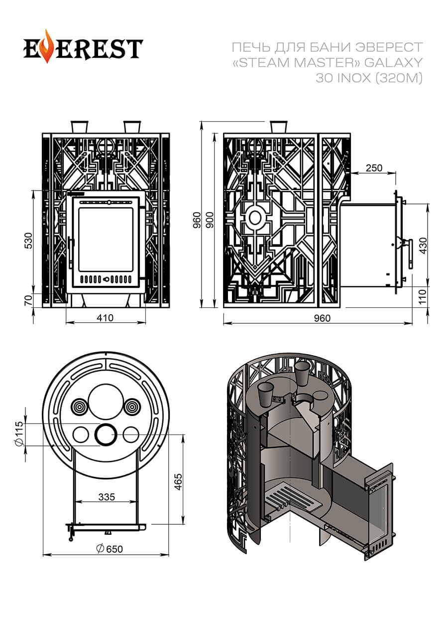 Печь для бани EVEREST Steam Master INOX изготовлена из нержавеющей стали марки AISI 430.