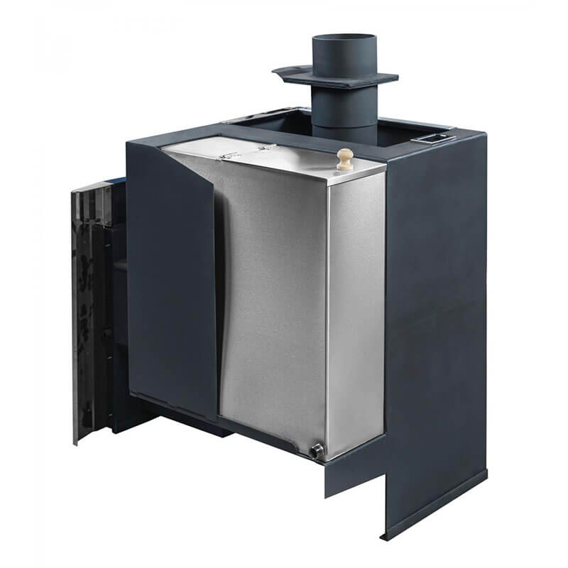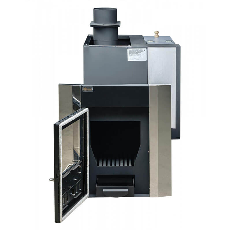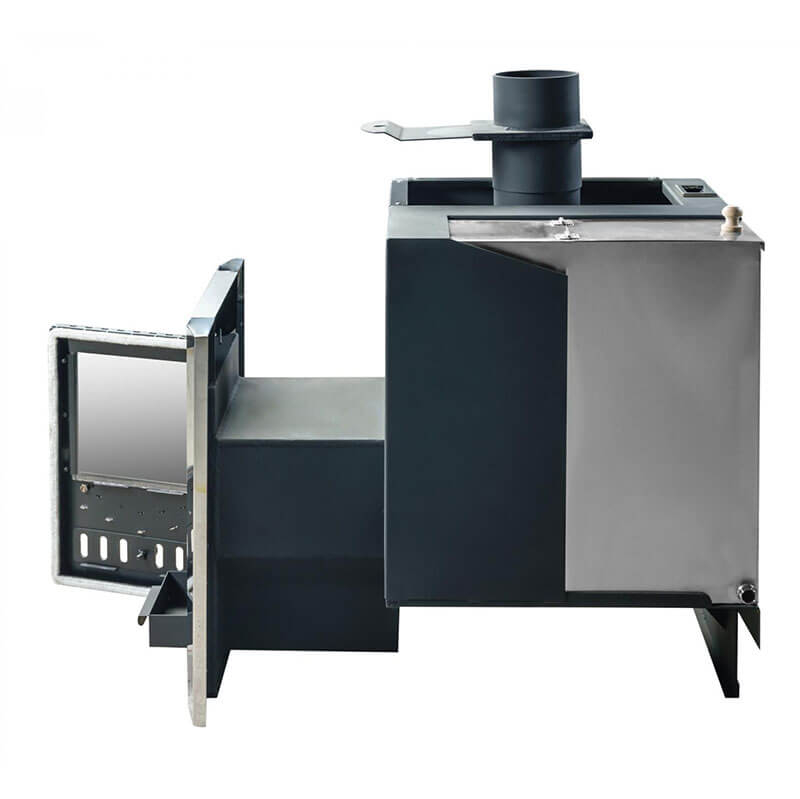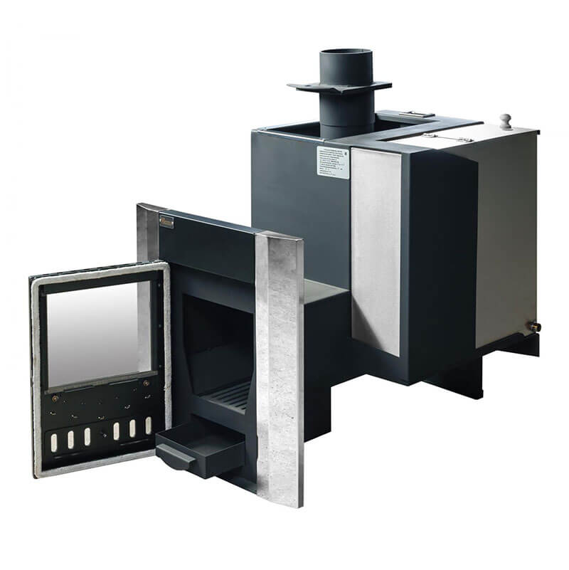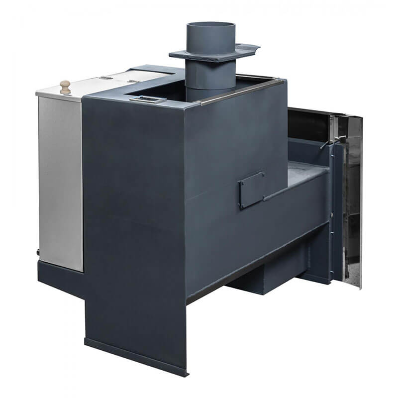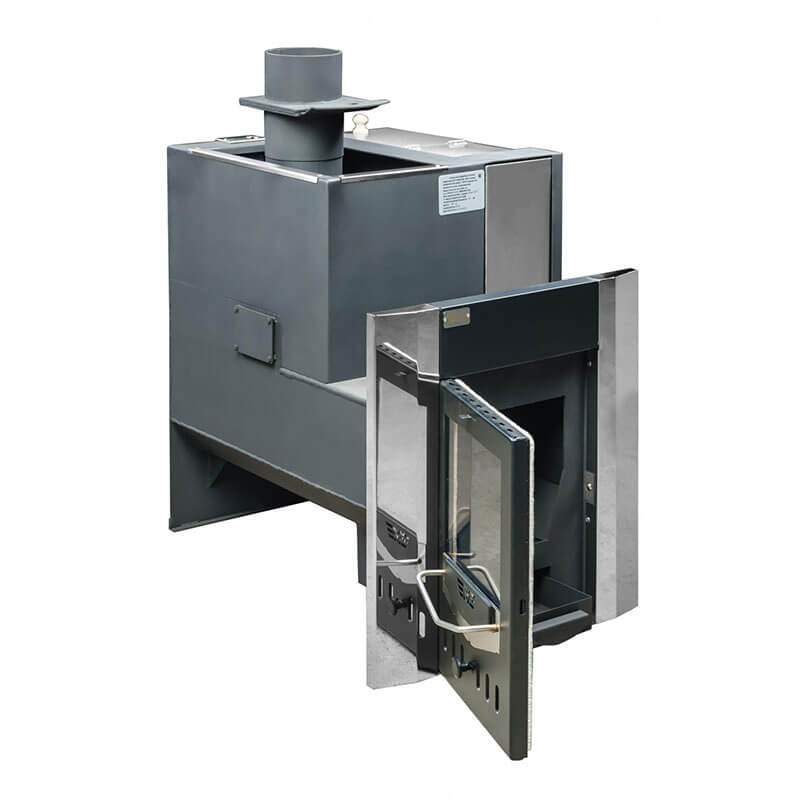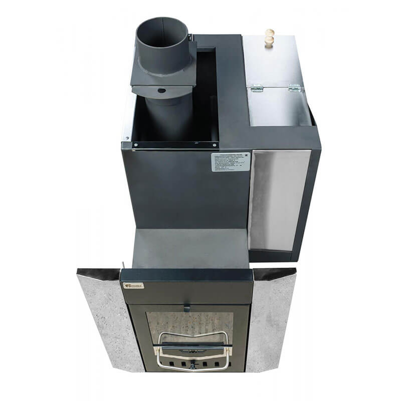 Объемная, не вентилируемая каменка позволяет получать большое количество пара, толстый металл топки и дымовых каналов обеспечит высокий ресурс печи (более 15 лет).